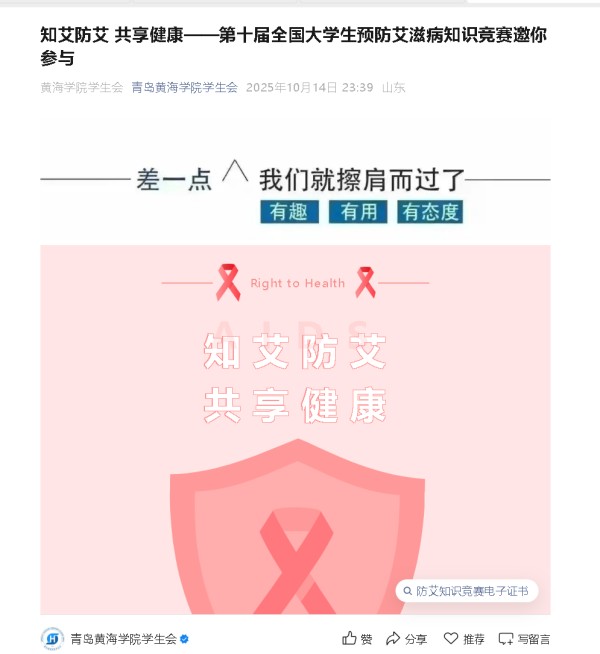 本文来自:青岛黄海学院防艾活动线下活动投稿