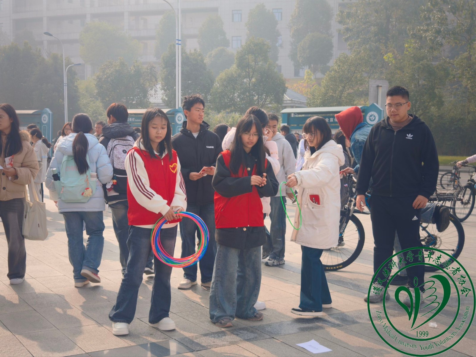 12月1日11:00,一食堂门口的活动现场早早搭建起主题帐篷与宣传展板,醒目横幅传递着防艾理念。志愿者们通过发放图文并茂的宣传手册,系统普及艾滋病传播途径、预防措施及反歧视知识;同步开设的为“艾”正名、防“艾”套圈—风险直击赛等互动游戏,让同学们在轻松参与中厘清认知误区,深化对防艾重要性的理解。活动内容将健康锻炼与防艾宣传相结合,“弹弹弹,弹走艾”,“防艾防线”换水互动等趣味环节吸引大批同学参与,志愿者为完成挑战的同学送上定制礼品,既强化了防艾知识记忆,又激发了大家参与活动的热情,实现“健康防护+身心成长”的双重目标。