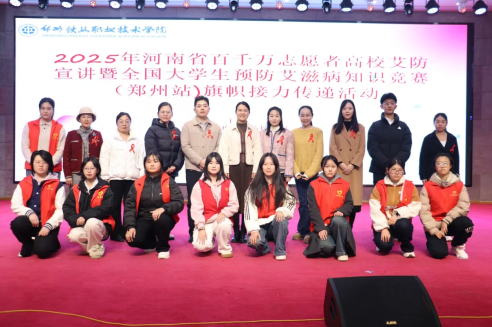 为进一步提高我校学生对艾滋病的认知水平,增强自我保护意识,营造健康向上的校园氛围,11月18日下午,由校团委、校卫生所、校红十字会承办的“青春防艾,共护健康”艾滋病宣讲暨传旗仪式在我校大学生活动中心隆重举行。郑州市疾控中心艾防所所长仇元营、郑州市疾病预防控制中心防艾项目负责人吕奕辰、校团委副书记牛立薇等领导及专家、郑州师范学院及我校师生代表参加活动。