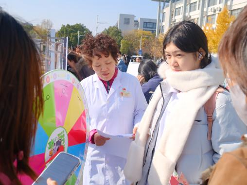 活动前期,社团通过线上微推宣传、物资筹备、人员分工等工作,为活动顺利开展筑牢基础。当日中午11时,德清湖旁的户外互动区热闹开启,“幸运转盘答题”“防艾闯关”“红丝带连线”“让‘艾’飞”四大趣味环节同步进行。